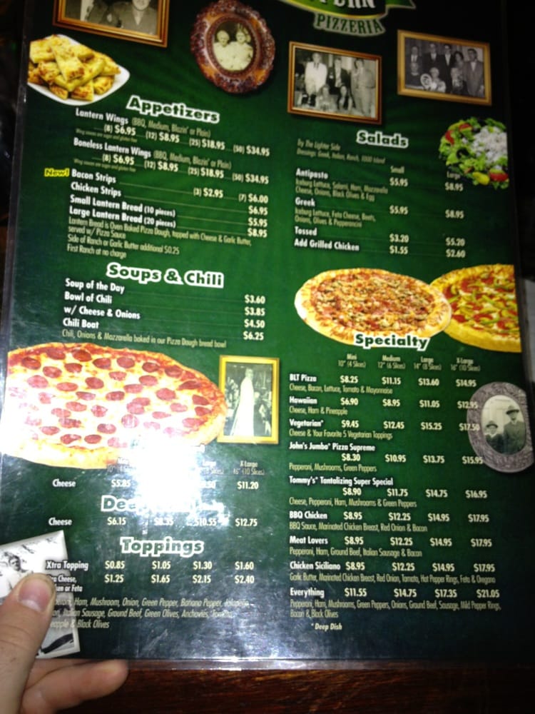 “ Seven years later, so it's time to update this review. This is the closest location to where I live... Only about a five-minute drive. We got takeout tonight because they sent me a free small one-topping pizza for my birthday (which is intriguing, because I don't see anywhere to put in your birthday when you sign up for the eclub... But I digress...). I was able to actually order a two-topping pizza and just pay the difference, which was a little over a dollar. We got pepperoni and mushroom. As others have mentioned on here, they use canned mushrooms, which is a bit disappointing, but not a big deal overall. What differentiates Green Lantern from the other area pizza places for me is that they offer round deep dish pizza, which is very unusual. It's almost like they take two crusts and put one on top of the other, and it's delicious; tonight's was no exception. Their pizzas are a little pricey, which is why I don't order them very often, but they are always very tasty. Since my first review, I've been to this location a few times for takeout (it's takeout-only), and they're usually very prompt. It looked like all of the employees were wearing their masks (correctly), as well, which is definitely a plus. ”